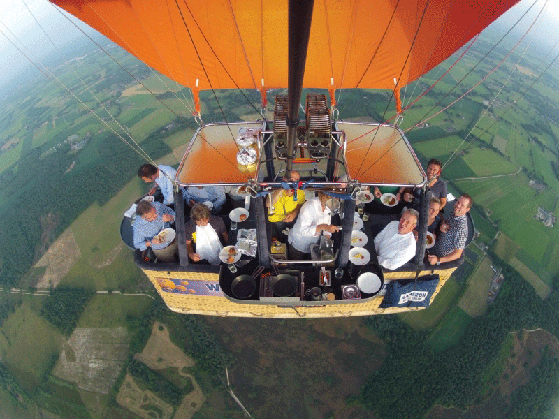 Đây là nhà hàng khinh khí cầu duy nhất trên thế giới, đem lại cho du khách trải nghiệm độc đáo khi dùng bữa trên trời. Từ những bữa tối trong ánh hoàng hôn tới bữa sáng với rượu champagne, nữ đầu bếp của chuyến đi sẽ khiến bạn bất ngờ với những món ăn ngon tuyệt được chế biến ngay trên khinh khí cầu. Rượu hảo hạng và đồ ăn tuyệt vời giữa không trung – thật chẳng còn gì tuyệt hơn.