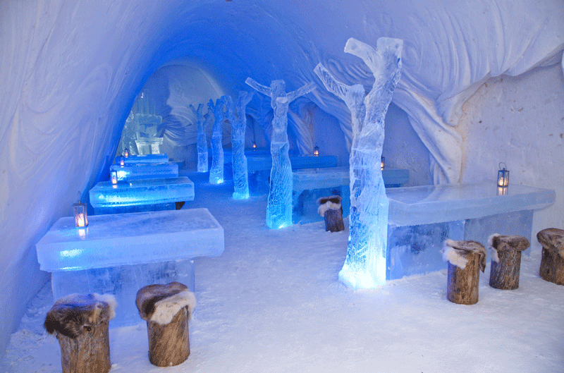 Toàn bộ nhà hàng đều được chạm khắc từ băng tuyết